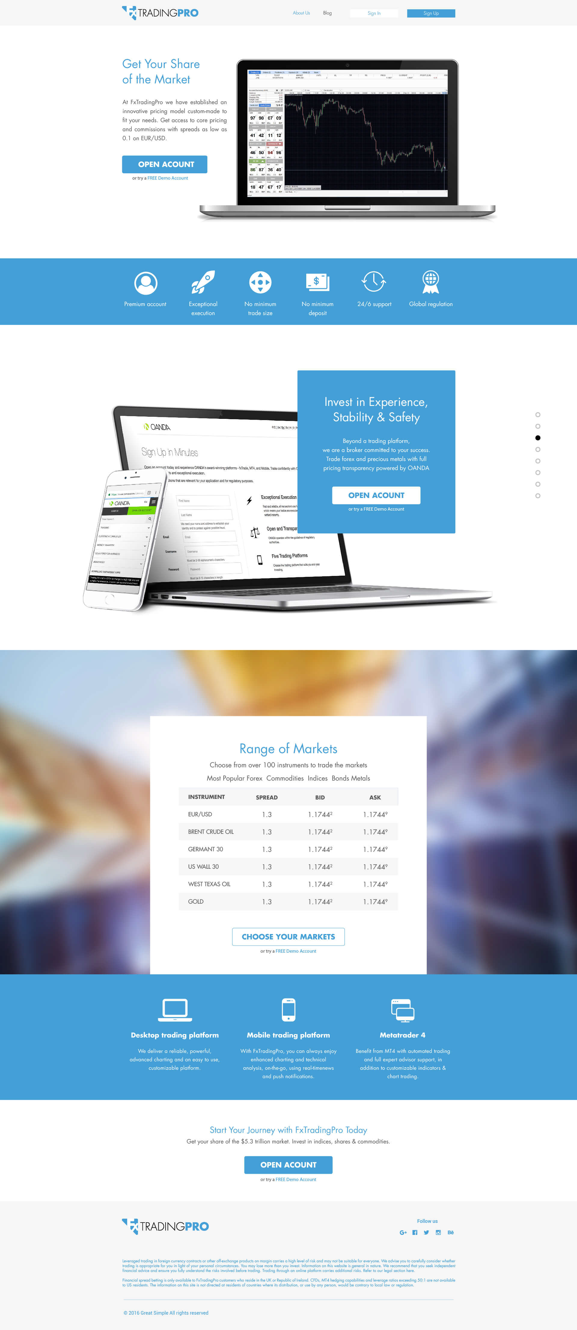 Simple and minimal website to stand out from the noise that the forex industry has produced. Easy to read and pleasant to the eye.